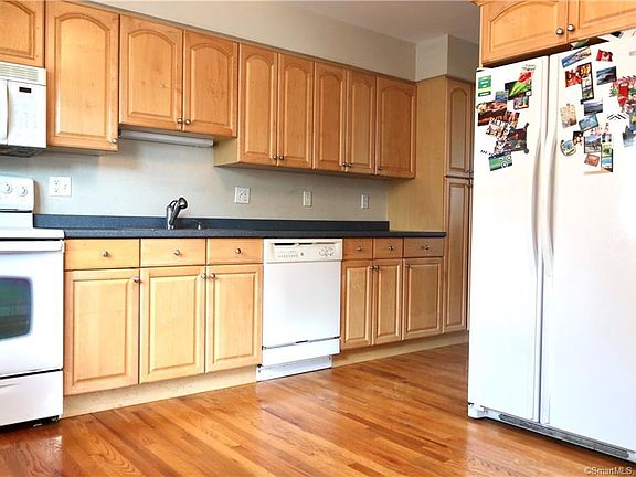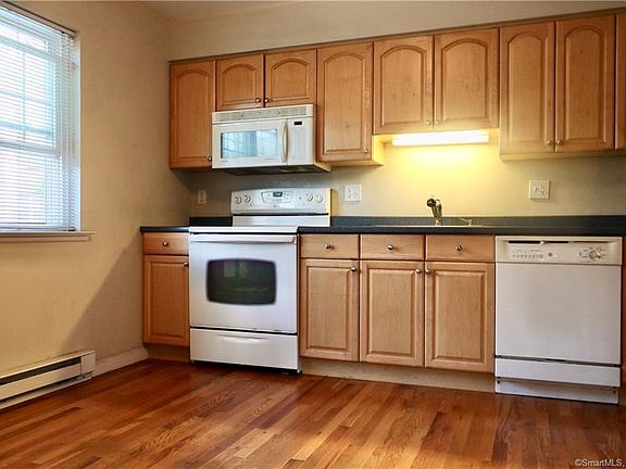 Cozy 2 bedroom end unit townhouse in Springdale Stamford. Naturally well-lit rooms. Walking distance to shops, restaurants, train station. Easy to access to Merritt Parkway. Hardwood flooring throughout. Eat in kitchen. Washer/dryer in full unfinished basement with lots of storage space. One assigned & some visitor parking Space.