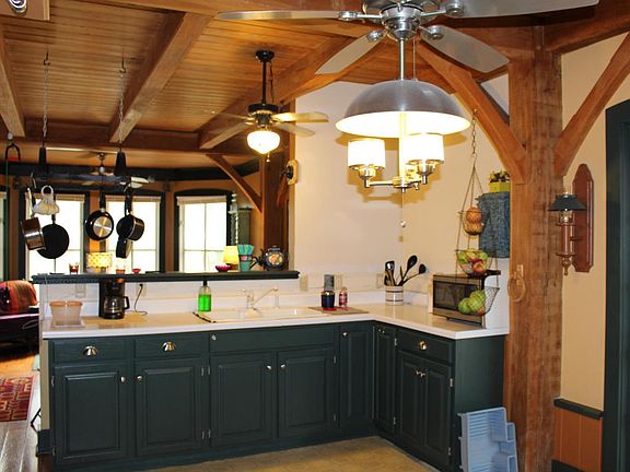Unique property with tremendous potential! Post & Beam timber frame construction with a main-level open floor plan that's perfect for casual living. A bedroom, full bath, and laundry are on the main level. Besides two bedrooms & baths upstairs, there are two additional cozy rooms with skylights for office, play room, or additional sleeping rooms. A walkup attic provides additional storage space and could be finished. The covered wrap-around porch and rear sun room provide even more space for relaxing. The level lot is private with a country feel, but so convenient to Blacksburg and the Country Club. There's a pen for the two adorable goats and a shed for the sweet pot-bellied pig- all convey in sale if purchaser desires! Freestanding carport. Lot backs to Deercroft S/D. SEE AGENT REMARKS