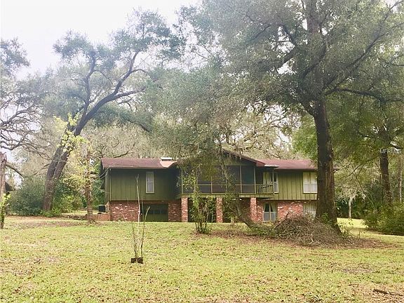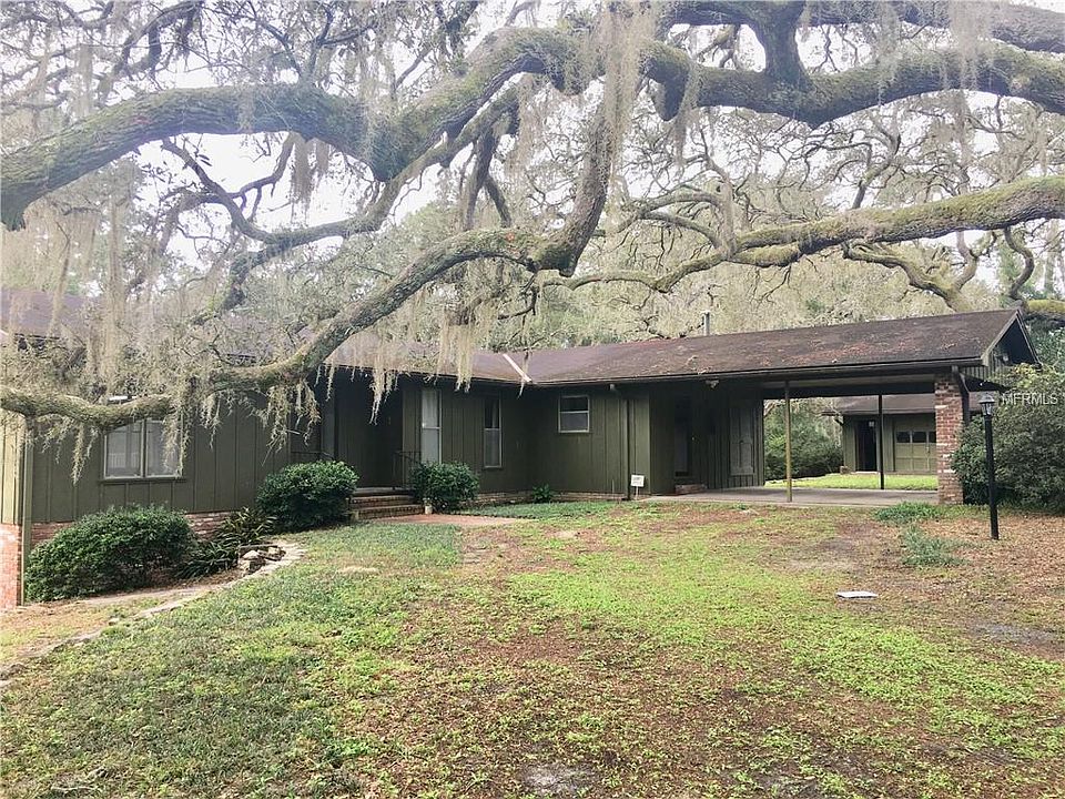 OLD FLORIDA AT ITS BEST! This home is a solid, well-built, late mid-century, classic 1970 4 bed, 3 ½ bath home. LOCATION LOCATION, LOCATION tucked away on heavily first growth tree-lined rolling 5 acres. Close to the intersection of Hwy 15-A and Hwy 17. These large picturesque lots are not easy to find and when they come on the market demand is high. This home has been designed to complement the sloping landscape and has walkouts on two levels, with fabulous 360-degree scenery. Screened upper porch, in addition to a large patio. Custom oversized carport with tongue and groove ceiling in addition to a 2-car detached garage and a bonus garage/workshop under the main roof. Modern design updates will elevate this classic to its ultimate potential. All internal systems (such as the plumbing, HVAC, and electrical) are in ship shape. This property is the setting you have been waiting to see.