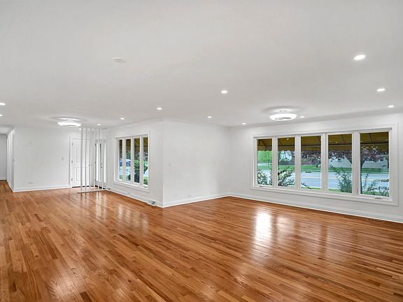 Meticulously renovated 3 bedroom ranch home on a corner lot nestled in the heart of Des Plaines~ absolutely nothing to do but move in. New: hardwood flooring, light fixtures, trim, interior and exterior doors, kitchen, all 3 bathrooms, skylight, sump, fans, updated fireplace, and newly finished basement. This inviting home features an open concept floor plan, gleaming hardwood flooring on the main level, tons of windows that allow for an abundance of natural lighting, and crown molding. The living room opens to family room with a modern electric fireplace. The dining room showcases an updated, modern light fixture and walls of windows that allow for great views of the outdoor space. The completely updated kitchen boasts modern white cabinetry, quartz counters, backsplash, large island, and stainless steel appliances. Down the hall there is a primary bedroom with new en-suite bath, two additional bedrooms, and an updated bath with large tiled shower. The finished basement adds even more living space including; a large rec room, exercise area, bonus room, brand new bath with oversized shower, and a laundry room with sink. Outside, you can relax on the patio or deck overlooking the private, fenced yard. Located near shopping, restaurants, and easy interstate access. Great home in a great location!