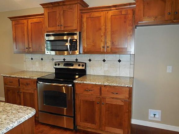 Quality built by Bussell displaying 4 bedrooms, 2 baths, 3 car garage located on a spacious corner lot. Beautiful home offering open hearth room with fireplace, split bedroom floor plan, eat-in kitchen with custom Knotty Alder cabinets, granite countertops, pantry & Stainless Steel appliances. The spacious master bedroom and bath has a double vanity, walk-in shower & walk-in closet. The other 3 bedrooms are generously sized. Exterior features include a deck, sodded, landscaped yard, sprinkler system & decorative shutters. Association includes swimming pool & trash service.