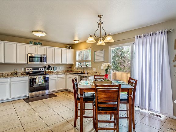 Wonderfully updated home in central Highlands Ranch close to many amenities! You will love this home once you step in with an open floor plan featuring a main floor bedroom/study & 3/4 bath for your convenience. The lovely kitchen includes white cabinets, granite countertops, granite sink, stainless appliances & nook area. The slider off the nook leads to a backyard w/extended patio. The spacious family room is perfect for winding down at the end of the day. Upstairs you will find a roomy master suite, his/her walk-in closets & an updated bathroom w/granite, new sinks & fixtures. The upstairs laundry & 3 additional bedrooms provide room everyone! The basement adds to the finished space with a rec/tv room, area for an additional office or game area & full bathroom. Overall features include covered front porch, hardwood & tile flooring on the main level, newer carpet upstairs & in basement, handicap accessible with wider doorways on main level, new lighting, fixtures & fans throughout home. Just blocks to Eldorado Elementary, grocery & trails close by!