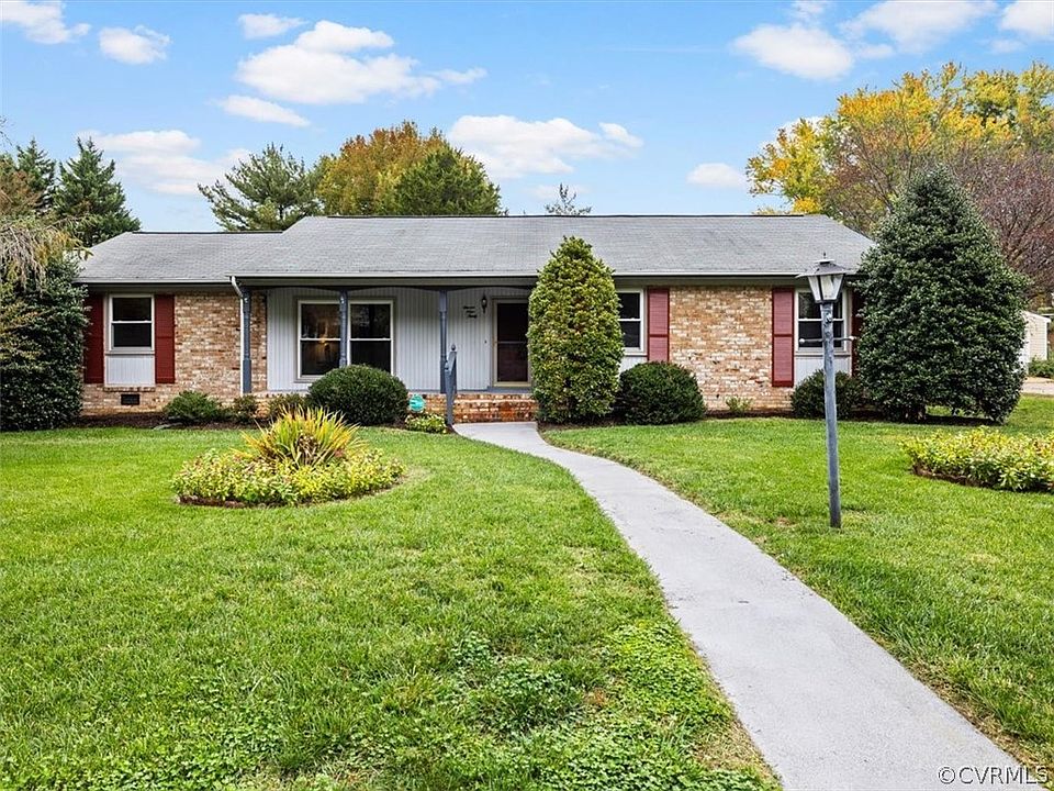 NEWLY UPDATED ADORABLE RANCH HOME IN THE HEART OF MIDLOTHIAN! Great Opportunity w/ this First Time Offered Home! Meticulously Kept by Original Owners. Formal Living Room boasts Abundant Natural Light from Large Windows, & Gleaming NEWLY REFINISHED Hardwoods that flow throughout! Intimate Dining Room has Chandelier & Chair Rail Moulding. Adjacent Open Kitchen has White Appliances, White Cabinetry, Modern Pendant Light over the Sink, Fan Fixture & Bartop that overlooks Cozy Family Room w/ Painted White Brick FP/Mantle, Fan Fixture, Gorgeous Beamed Ceilings. Primary Suite has Light/Fan Fixture & Ensuite Bath w/Tile Floors & Tile Surround Step Down Tub/Shower w/Grab Bars for Support. Additional Bedrooms have Closets & Windows. Hall Bath has Tile Floors w/Tile Surround Tub/Shower. Huge Fenced Backyard w/ Large Deck overlooks Manicured Lawn w/Detached Shed for Additional Storage. Attached Covered Carport in Private Drive. FRESHLY PROFESSIONALLY PAINTED THROUGHOUT - Ceilings, Trim& Walls! Newer Installed Energy Saving Windows! NEW HVAC - 2020!, AGE of Water Heater 6-7 years, AGE of Roof 2009, Baseboard Heat still works, Sump Pump Installed, Gas Logs FP, Dishwasher 1 year NEW