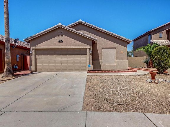 Great single level home in Peoria at a GREAT price! Soaring ceilings and warm wall tones throughout. Kitchen is complete with center island, a plethora of cabinets, and stainless steel appliances. Master suite has tile flooring with ceiling fan and bay window. Full bathroom with dual sink vanity and separate soaking tub + shower. Spacious walk in closet! Backyard features an extended covered patio with desert landscaping and plenty of room for entertaining. Seller has updated some windows and fresh paint. Home is just minutes from Arrowhead Mall, Mariners Spring Complex and lots shops and dining choices nearby. One Guard 1 year Home warranty included with sale. This home is sure to go quick, so come see it today before it's too late!