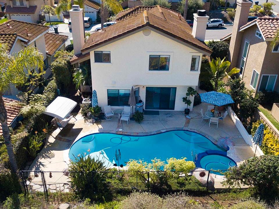 Upgraded, light and bright 2-story 4 bedroom 2 ½ bathroom home nestled on a quiet cul-de-sac in the highly sought after Sabre Springs area of Poway. This turnkey home features vaulted ceilings in living room and primary bedroom upstairs, granite countertops and new stainless-steel appliances in kitchen, upgraded energy efficient 2ton HVAC system, newer exterior and interior paint, new front yard landscaping and sprinklers. The pride of ownership is also visible in the private and tranquil backyard that backs up to open space with mountain views and easily accessible hiking/biking trails. Hardscaped, low maintenance yard features a new patio, re-plastered pool/spa with a new 2hp pump, new drainage system from backyard to the curb. New security system. *** Situated in desirable Poway school district with convenient access to I-15 and 56, this great home is a Must See!