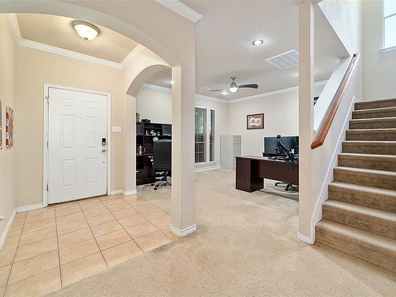 In coveted Northwest ISD, a wonderful 3 bed, 2.5 bath home complete with a 2nd story media or game room! This home is packed with character and flows nicely from room to room with large spaces for family gatherings. A tech lovers dream with smart home features like voice activated lighting, fans and a permanently installed low profile exterior holiday lighting system. New updates include a class 4 impact resistant roof, large capacity heat pump water heater, zoned high efficiency HVAC system, smart thermostat and exterior motion sensing cameras. Make a terrific meal in the large kitchen and head outdoors to enjoy a nice evening on the patio. Community pool, gym and clubhouse round out this amazing home!