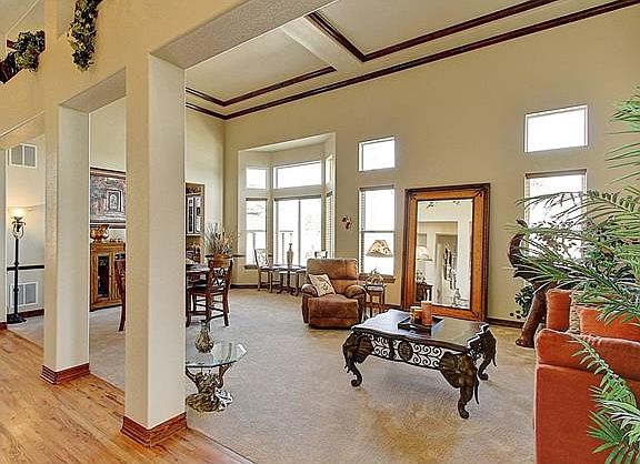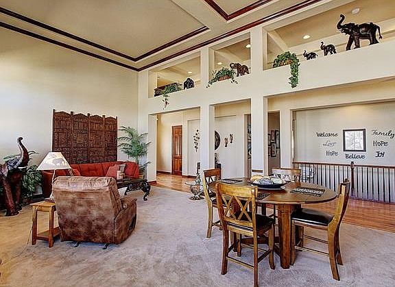 Situated on one of the largest lots in The Estates at Pine Bluffs, this home features over $100,000 in Seller upgrades and $70,000 in Builder concessions. Xeriscaped and grass yard with gazebo, basketball court, private patio, sprinkler system. 8â tall 36â wide doors throughout the home. Large Master Suite with coved ceilings, ensuite 5 piece bath plus bidet, walk in closet, three sided fireplace that connects the Master Retreat. 3 car garage with storage cabinets and finished floor. Basement features 10â ceilings, Rec Room, Bed, Bath, and large storage areas that can accommodate extra bedrooms, exercise rooms, offices, etc. Handicap Accessible Features include the Stair Chair, and 4â steps both in the garage and on the back steps, wide hallways and 36ââ wide doors. Whole house Automatic Backup Generator, 2 high efficiency HVAC systems, sump pump and radon system. Close to Shopping. Some furniture, televisions and patio furniture are available for sale.