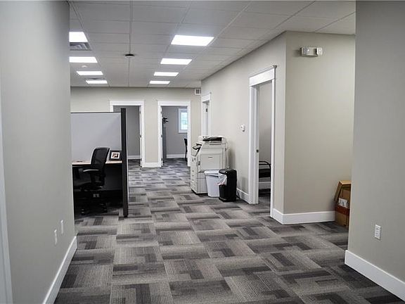 This beautifully renovated office space is in a great location at the intersection of Routes 28/66 and 85. This 2300 square foot office was impeccably remodeled in May of 2018. The office features 5 private offices 2-15x10, 2-12x9, and one 10x11. The large 24x11 conference room is an added bonus. There is also a 27x20 large open space that can be used for cubicles or more office space. The 20x10 break room features a well equipped kitchen. The unisex bathroom is ADA compliant. The climate controlled IT room has a security door. The office has 200 AMP service. There is a large 24x11 storage area with a separate entrance for easy access. Monthly garbage included with lease. The 75 space shared parking lot gives plenty of room for parking and also allows for easy turn around for large vehicles. This office is a must see!