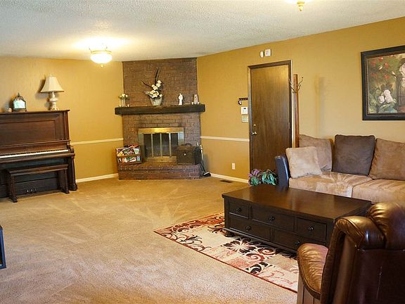This brick home with a side load garage is located in the Goddard school district and has many upgrades throughout! The curb appeal is beautiful with the home situated on a corner lot across the street from a large park. As you pull up to the home you see a well cared for lawn with great landscaping (the well and sprinkler system make care for this large lot easy maintenance). Welcomed by the covered front porch area, you enter the home into a spacious living room boasting a corner fireplace. The kitchen and dining areas have been upgraded with new, cork flooring and you will love the new updates throughout the kitchen . Don't miss the full size pantry (this area was previously where the washer and dryer were held, hook ups are still behind the shelves if a future home owner would like to convert it back). The master bedroom contains it's own private master bath with a double vanity! Downstairs holds a large family room area, a huge space which could be used as a game room, as well as one additional finished room that could be used as an office, exercise room or whatever may fit your needs. A few additional extras...the home has been recently painted both interior and exterior, light fixtures updated throughout, all windows have been replaced and the home's a/c unit has been recently replaced. The home's backyard has a huge, patio area with mature trees at the back of the lot for added privacy! This home has been very well cared for, it is a must see!