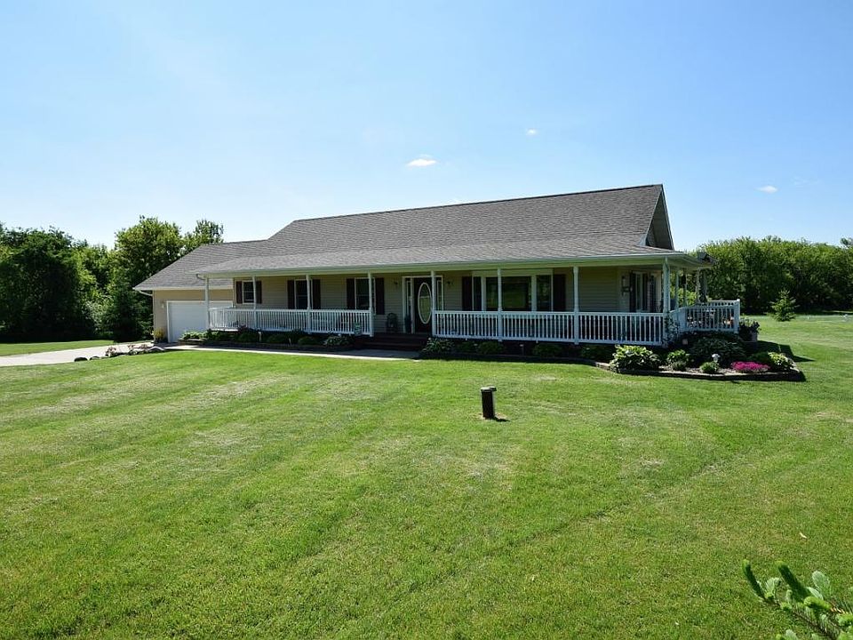 Nature surrounds you! Home built in 2008 on 3 acres, home is open & welcoming! Wrap around front porch and brick patio overlooks beautiful gardens. 3 bedroom 2 bath, main floor laundry room, vaulted ceilings, gas FP accented with field stone, large island/breakfast bar, hickory cabinets, tile floor, 5' trim master suite are a few of the attractive features of this home. Full size windows in basement plumbed for 3rd bath and ready for your finishing touches. 2 acres fenced pasture & invisible fence. 1 large animal allowed per acre.