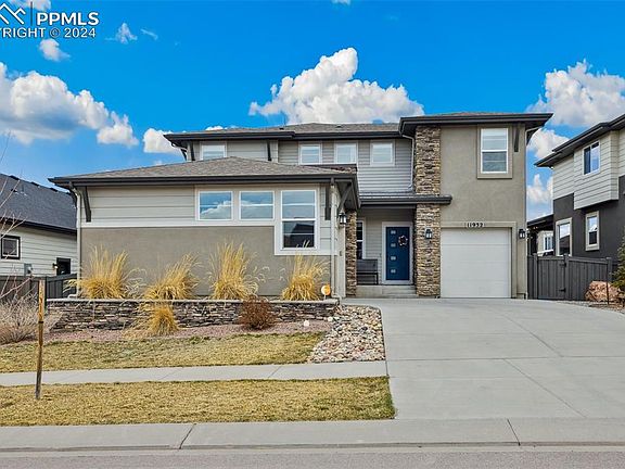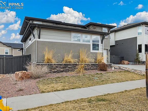 The Perfect Home in D20! Hottest Community in North Colorado Springs, The Farm! Stunning Views! Gorgeous Trails. Full YMCA workout center with Pool! Watch the Air Force Thunderbirds from your back deck. This gorgeous home has it all. Only 4 years young, this 5 Bedrooms, 3.5 bath, 3.5 car garage home is in immaculate condition!. The Formal Dining Room greets you first as you enter. Then wrap around to the large living room with tons of views. The Gourmet Kitchen has its own breakfast nook, which walks out to the covered deck. Awesome built in cubbies in the mud room between the garage and kitchen. Make full use of the main-level office with mountain views. Upstairs has 4 beautiful bedrooms. The Primary bedroom has stunning views, an attached 5 piece spa-like bath, and huge walk-in closet. Large laundry upstairs with utility sink! The garden-level basement is fully finished with Wet Bar, 5th Bedroom, Full bath, 9'+ Ceilings, Family Room, and Theater! Fully fenced back yard with patio, fire pit and play set. Both garages can be accessed from the home. The 2-car is significantly oversized and includes lots of built in shelving. Don't miss this one!