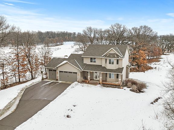 Welcome to this stunning two-story 2016 home on 2.6 scenic acres. The kitchen, dining, & living room areas overlook a large cedar deck with beautiful views you'll enjoy year-round. The main floor also includes an elegant office space, laundry, and 1/2 bath. Upstairs you'll find a huge primary bedroom with a walk-in closet and 4 piece ensuite. The spacious second floor also includes two additional bedrooms and a 4 piece bathroom. The basement is full with look-out windows & is ready for your finishing touches. This property is professionally landscaped with in-ground sprinklers around the house.