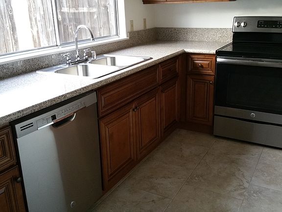 This terrific townhouse has just been completely remodeled. It has two bedrooms and 1 1/2 baths, with the bedrooms being upstairs and the living area downstairs. The kitchen has brand new cabinets with granite counter tops and stainless steel appliances. Every floor has brand new flooring: ceramic tile throughout the downstairs and baths, carpet in the bedrooms. Also included is a large master bedroom with three closets, a big private fenced rear yard, brand new Energy Star forced heating and AC, and a laundry room with plenty of space for a side by side washer and dryer. PETS ARE WELCOME! Feel free to go by and take a peek in the windows. This townhouse is available now. PETS WELCOME on owner approval. Big Yard. Central A/C. Resident is responsible for all services except trash and recycling. Laundry hook-ups in unit.