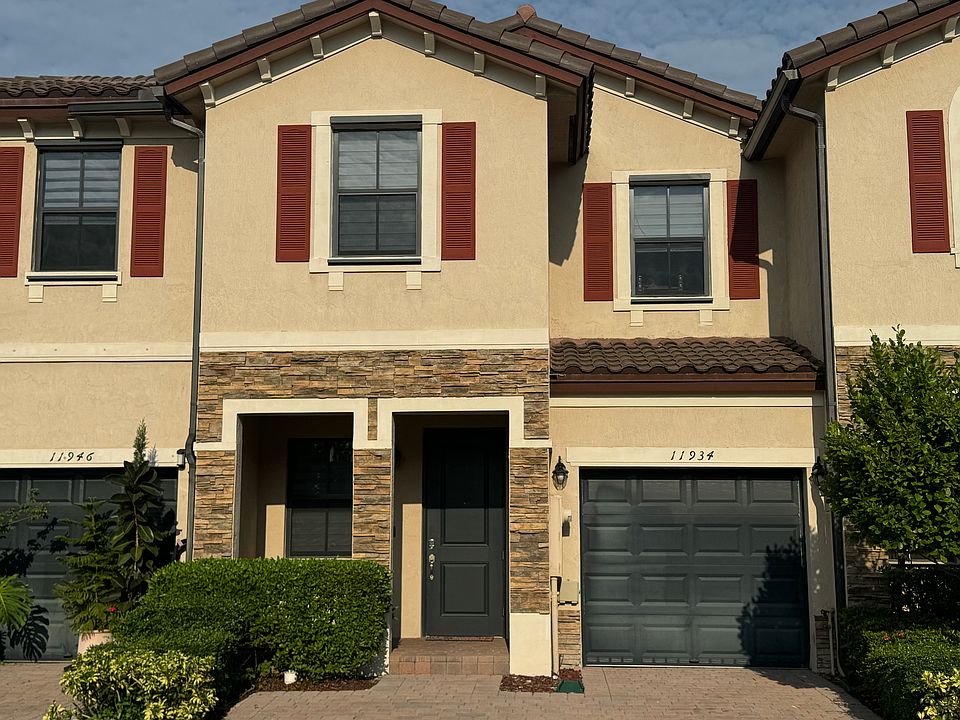 BEAUTIFUL FAMILY HOME!! 2018 Build Spacious Townhouse with 4 bedrooms, 2.5 baths, large 24 x 24 porcelain tiles downstairs and laminate flooring upstairs in all rooms & stairs, quartz countertops, stainless steel appliances, and paved outdoor patio area . One car garage with EV charging setup, acrylic floor, and shelving for storage. Driveway large enough for three cars, plenty of visitor parking available. Master Suite is spacious and features a Walk-in Closet and bathroom with dual sinks and shower. Comfy laundry with large washer/dryer on first floor. Located near great schools, parks, shopping centers, and Baptist Hospital West. Availability is for September 26, 2024. Tenant is responsible for all utilities (electric, water, cable) and changing the A/C filter each month (filters will be provided). No smoking allowed.