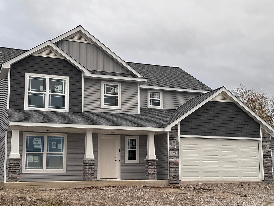 Backing up to common area, this Lancia Homes Riverdale II is really popular. Home has 4 Bedrooms, 2.5 Baths, 2125 sq.ft., and 2-Car Garage with 4' ext. comes with some nice upgrades. This home has Kitchen with walk-in kitchen, breakfast bar, quartz countertops, ceramic backsplash, stainless appliances dishwasher, microwave, fridge, soft close drawers and additional gas line hook-up behind stove are standard. Nook has 12 x 10 Patio and all are open to the Great Room. Office with French doors is near entry and Half Bath featuring pocket door. Owner Suite Bedroom has ceiling fan walk-in closet with dual rod & shelf 1-wall unit and a 5' shower with dual sink vanity. Main Bathroom has pocket door so vanity and tub-shower combo are separate for faster morning routines. Quartz countertops in Baths also. Laundry room is upstairs complete with washer and dryer. Mudroom has lockers off of the Garage. Garage has attic access with pull-down stairs for storage above. Vinyl plank flooring in Great Room, Kitchen, Nook, Pantry, Foyer, Baths and Laundry Room. Selling agent to verify school. NWAC may make changes to school assigned as NW Fort Wayne grows. Home has Simplx Smart Home Technology.