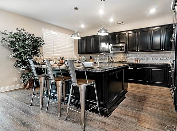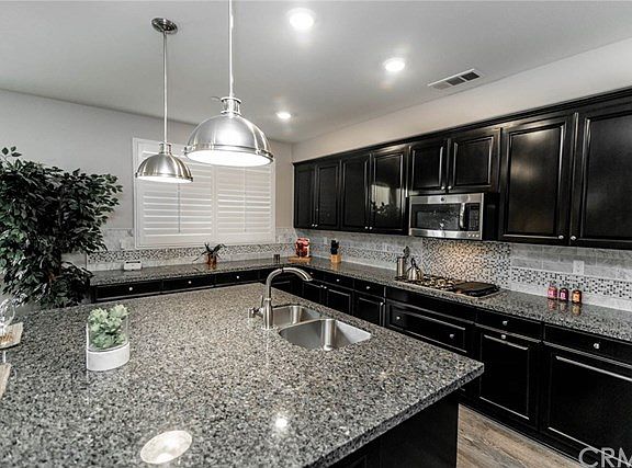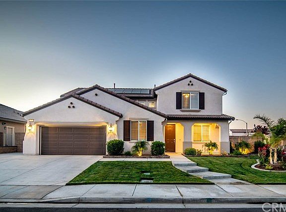 New Reduced price! Motivated seller..Experience the elegance of this beautifully designed turnkey home with over 100k worth of custom upgrades including, solar, wifi system to control, airplay sound system, garage opener, security cameras, and security alarm system. Fresh paint, upgraded 6 inch baseboards, LED recessed lighting throughout the whole home, custom cabinetry and tile flooring in wet areas and much more! This corner lot home features pride of ownership as each room shows something special. Inside the colors are warm, with neutral carpet, beautiful laminate floors, and tiled bathrooms. Enjoy the open concept, perfect for entertaining family and friends. In the great room you walk into a beautiful fireplace and built in cabinets. The kitchen has tons of cabinet space, tile backsplash, granite countertops, stainless steel appliances, walk-in pantry and a large island great for many occasions. Walk into the dining room and admire the stone accent wall and crystal chandelier- these areas are where great conversations happen! Five bedrooms (one down), large office-bonus room, a spacious loft and upstairs laundry room with lots of linen shelving. The backyard is beautifully landscaped with LED lighting, built in BBQ with a mini kitchen, fire pit for those California nights! 680 sqft garage with storage racks and cabinets. This home is close to schools, restaurants, grocery stores, goodman center & the newly opened costco, amazon center and more.