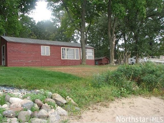 Gorgeous .75 Ac Lot w/107 ft. fantastic lkshr on the NE shore of Sugar Lk.(9 ft. clarity) Beautiful sunsets, hard sand beach w/ perfect elevation. Charming 2BR cabin. Nostalgic & cozy. Desirable lot to build your dream home. Great loc. 1 hr from metro.