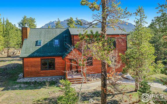 Located in the majestic Colorado Rocky Mountains this pretty two-story log sided home has views of Mt Meeker and Twin Sisters. Rocky Mountain National Park's Wild Basin less than one mile and Long Peak/Lily Lake minutes away. Moose, elk, deer, black bear, bobcat and coyote are among the wildlife. Abundant ponderosa and lodgepole pines, aspen and granite rock outcroppings are scattered throughout the lot. There is easy access off Peak to Peak to Estes Park and RMNP is only 12 miles.