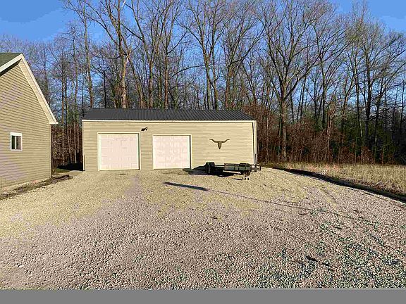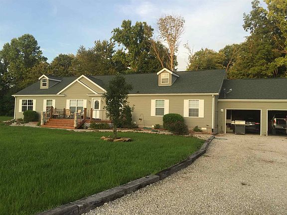 Crane commuter? Privacy seeker? Looking for additional land to roam on? This is your house! With 4 bedrooms, 2 baths, situated on 5 acres, what more could you ask for!? Inside you'll find granite counter tops throughout the house accompanied with fun and unique features such as crown molding. You won't find a lack of counter space or cabinets in the kitchen. This home features two living rooms and a master suite. In the master suite there is a walk-in closet, double vanity and an extra room INSIDE of the suite! Along with the 2 car attached garage, there is a pole barn with a 6" concrete slab and is heated with a brand new wood stove (only used one season, new as of 19'). Out front there is a soybean crop ready for it's new caregiver. Country living at it FINEST!