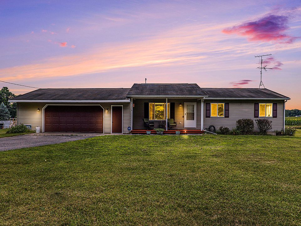 This beautiful ranch in Rockford is ready to greet you! Upon arrival you'll notice the beautiful views and neighboring farm fields. Updates begin right away including a new service door, front door, shutters, landscaping and freshly painted garage door and porch. As you enter you're welcomed by a warm living room and kitchen. You will find plenty of space inside and out with 4 bedrooms, 2 bathrooms and a finished basement on an acre of land. Enjoy the outdoors from your backyard patio or the views from your kitchen. Add personal touches to make this home yours! Ideally located 11 miles to downtown Rockford, 25 miles to downtown Grand Rapids and less than 10 miles to US-131.