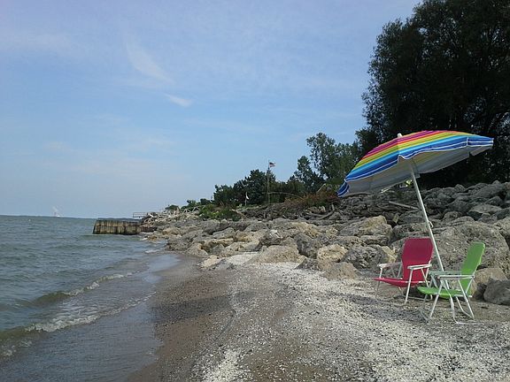 This is a one-of-a-kind custom built beach house at Reno Beach that comes complete with exquisite decor and breathtaking views. The enticing design and the charming personal touches gives the entire property a slightly Caribbean look. The beach and the waterfront is your own private piece of paradise! The home features 2 full master bedrooms. If desired, the 2nd floor open loft area can easily be converted to a 3rd bedroom. The home is newer and is elevated per current codes. This gives you the stunning Lake Erie views along with a large garage. The 8x24 outdoor deck has a unique bridge allowing you to easily walk from the deck to the scenic and a protective grassy dike at the waters edge. A smaller waterfront deck and steps, take you down to the water. Storage galore! Although not included in the list price, the home could be sold furnished. The area boasts numerous marshes and marinas and will eventually have a local metro-parks development. No association.