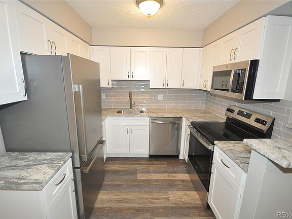 Updated two bedroom, two full bath with reserved parking. Great flow and large rooms. Clean, white kitchen cabinets and beautiful granite countertops. All stainless steel appliances included. Life-proof flooring in main areas and new carpet in bedrooms. Large walk-in closets. Wood burning fireplace. Gas forced air heat and central air conditioning. W/D hookups in unit. First floor unit with no stairs. Located in the center of the complex next to the swimming pool and tennis courts. Cherry Creek School System. Located within walking distance to shopping and restaurants. Easy access to Nine Mile and Iliff Lightrail Stations. Close to I225.