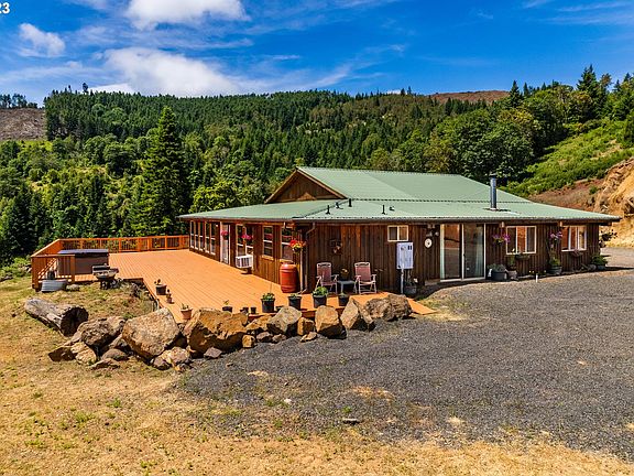 Welcome to a private oasis! This recently remodeled, one-of-a-kind gem is a nature lover's dream. Surrounded by tranquility, you don't want to miss out on the incredible views this home provides. Featuring space for four bedrooms, this beautiful custom property boasts cedar siding on the main house and a separate 1 bed/1 bath guest house. The custom kitchen includes stunning Chinkapin cabinets that perfectly complement the surroundings. Situated on over 30 terraced, irrigated acres with superb soil, this property is perfect for growing your own grapes or berries. Take advantage of multiple water rights, drawing from on-site ponds for irrigation. From the expansive deck with hot tub, watch the world go by, or explore the surrounding trails on an ATV/UTV or horseback. Please note, this property is by appointment only, so don't hesitate to schedule your private showing today! Nestled between the Cascade Mountains and the Oregon Coast Range, the Umpqua Valley is a nature lover's paradise. From the awe-inspiring waterfalls and rugged mountain peaks to the lush forests and winding rivers, there's no shortage of natural wonder to explore. Take a hike through the scenic Umpqua National Forest, cast a line in the mighty Umpqua River, or simply relax and take in the breathtaking views. Head over to the Pacific Ocean on the Oregon Coast! In addition to its natural beauty, the Umpqua Valley is home to a thriving arts and culture scene. The area boasts a number of museums, art galleries, and performance venues, as well as a vibrant community of artists and artisans. Whether you're into live music, theater, or visual arts, there's something for everyone in the Umpqua Valley. But what really sets the Umpqua Valley apart is its strong sense of community. With a diverse population of friendly, welcoming people, the Umpqua Valley is a place where everyone feels at home.