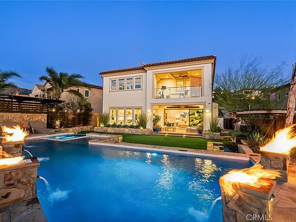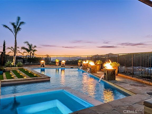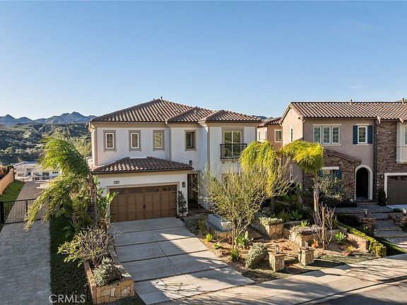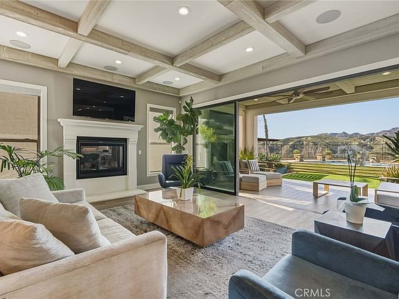 Situated in the prestigious Bella Vista community of Porter Ranch, this truly exceptional residence offers privacy, luxury, and thoughtful design. Located on a quiet cul-de-sac with no neighbors directly across the street, the home enjoys a peaceful setting within one of the community’s most serene locations. Originally the most expensive home sold by Toll Brothers in Bella Vista, every available upgrade and option was selected at the time of construction—no expense was spared. Offering 5 bedrooms plus an additional bedroom added in lieu of the garage and 6 bathrooms, the residence features 14kw solar system, Control4 smart home system, providing seamless control of lighting, music, televisions, climate, fireplaces, and automated window shades. Custom millwork is showcased throughout, including real wood beamed ceilings crafted by boutique woodworking shop Hewn in Oregon, paired with hardwood flooring throughout the home. The gourmet kitchen is equipped with a walk-in pantry, butler’s pantry, double oven, wine fridge, and an oversized stone island, all complemented by a striking tile accent wall that blends functionality with modern sophistication. An oversized laundry room with cabinets, sink, and a clothes rack adds everyday convenience and organization. The primary suite is a private retreat featuring a stone fireplace, custom built-in cabinetry, and a thoughtfully designed built-in desk and office area. The primary bathroom includes a soaking tub, dual sinks, and his-and-hers closets, creating a spa-like sanctuary. A spacious loft provides a versatile gathering space ideal for family movie nights, a playroom, or a casual lounge. Designed for both everyday living and entertaining, the backyard is a private oasis with sweeping city and mountain views and breathtaking sunset vistas. The multi-level outdoor space includes a raised saltwater pool, sunken dining area. High-end landscaping and hardscape feature Santa Barbara sandstone to complement the exterior of the home, along with two custom cantilevered steel shade structures and an outdoor shower. Entertain year-round in the fully equipped outdoor kitchen with grill, refrigerator, and sink, or relax in the California Room featuring Heatscope radiant heaters and a redesigned outdoor fireplace with a custom surround and mason-built hearth. Located just moments from Porter Ranch Community School, Porter Ranch Community Park, hiking trails, Porter Ranch Town Center and The Vineyards shopping center!