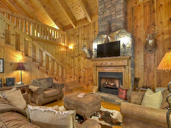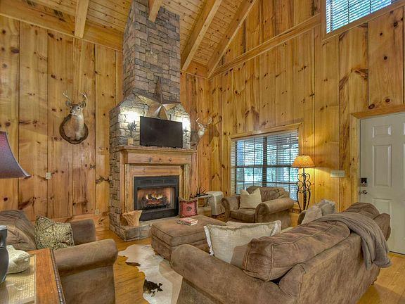Creekfront Cabin being sold FURNISHED that Borders the USFS! Enjoy the Peace and Serenity of Being in the North GA Mountains~ Outdoor Living at its finest~ Noisy Creek Frontage, Wrap around Porch with built in seating, Hot Tub, and Firepit area! This charming Cabin has open concept living area/dining/kitchen, featuring unique 16" Pine Board siding in Living Room and Floor to Ceiling Fireplace! The main level has one bedroom, one bathroom and laundry. The upper level is Oversized Open Loft Bedroom (big enough for 2 rooms), and full bathroom. Situated on a level .88 Acre Unrestricted Lot Located in the heart of the Cohutta Mountains~ Near Bear Creek and Pinhoti Trail System~ Have the Best Mountain Bike and Hiking trails in GA in your Backyard! Established Rental History Available.