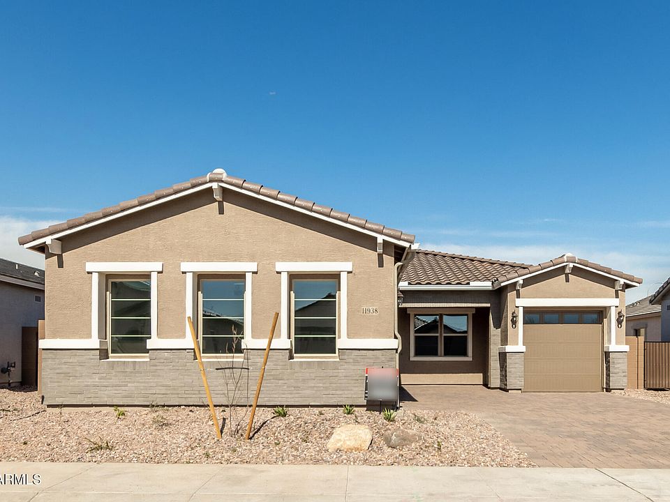 Explore this dynamic Townsend home, ready for quick move-in! Included features: a covered front porch; a quiet study and convenient powder room off the entry; an expansive great room with center-meet patio doors; a gourmet kitchen showcasing 42'' cabinets, quartz countertops, stainless-steel appliances, a large island, a walk-in pantry and an adjacent nook; a formal dining room; an eye-catching primary suite offering additional windows, a walk-in closet and a private bath with double sinks; two secondary bedrooms; a shared hall bath; a convenient laundry and a welcoming covered patio. This home also boasts dramatic 10' ceilings, a tray ceiling at the entry, wood laminate flooring, cultured marble bath countertops, front yard landscaping and concrete pavers at the driveway and walkway.