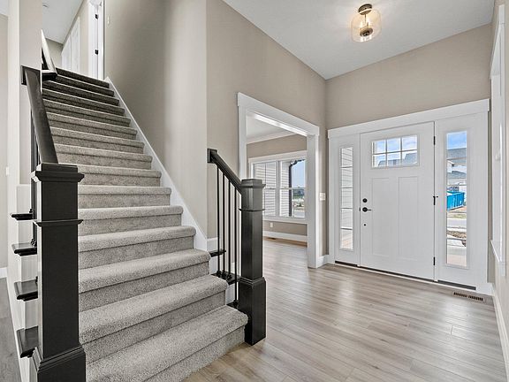 Another fantastic home by Carriage Place Homes in SWAC Schools. This outstanding 4-bedroom home will not disappoint with its bonus room and a home office/flex room. You will love the large entry leading into the two-story great room all opening up to an entertainers kitchen. The owner's bedroom is on the main level with a beautifully appointed bathroom boasting a custom tile shower and two story walk-in closet. The finishes are what you would expect with this well-known builder such as quartz throughout, custom cabinets, built-in shelving, and a large three-car garage. This home is also sitting on a water lot with wonderful views. Wired for sound and security in the main areas of the home! Other features include solid interior doors, attic storage, landscaping and yard included.