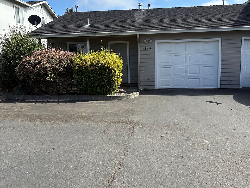 Building is a duplex w quiet neighbors next door. Mature well maintained landscaping. Off-street parking. Clean spacious garage w W/D hookups. Unit is spacious with separate dining. New paint, new blinds, new carpet, new vinyl and all new appliances. Looks beautiful! Quiet neighborhood. Near bus line, schools - 10 min walk/bike trail to shopping Tenant pays utilities. Must complete application for a viewing. No fee charged until after you've seen and want to pursue. Six month lease required, rolls to month to month. SMALL dog (under 20lbs) accepted. Sorry, no cats..