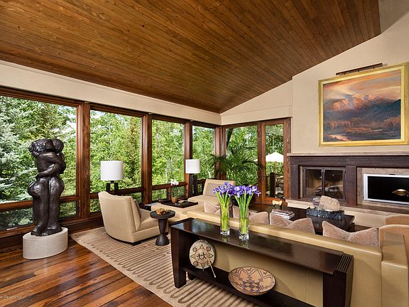 An exquisite, warm mountain home set in a peaceful woodland setting. So well-maintained and cared for, this spectacular house seems brand new. All finishes and decor of the highest quality. Gardens and decks are showpieces, and you'll often find deer grazing in the nearby aspen groves. Main level living, with huge windows framing views across the valley, and featuring burnished oak floors, alder cathedral ceilings, woodburning stone fireplace. Spectacular kitchen w/ Wolf range, SubZero side-by-side, 2 dishwashers, wine cooler, breakfast nook. Master suite, with gas fireplace and its own reading area, plus the adjacent study, has its own wing on the main level. The powder room is a work of art. Guest master suite and a 3rd ensuite bedroom on upper level with vaulted ceilings. On lower level s a generously-sized media room with woodburning fireplace, billiards table, game table, plus two additional ensuite bedrooms. Beautiful floorplan designed for several generations. Enormous storage. Humidified throughout. Snowmelt driveway. Trex decks. For more information visit: SnowmassRidgeRun.com