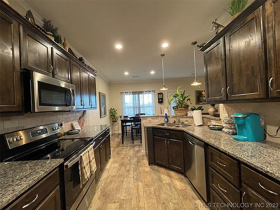 Beauty on the Corner!! 3 Bed, 2 Bath Brick Home featuring Foyer, 9 ft Ceilings, Granite Countertops, Open Floor Plan, Custom Cabinets, Breakfast Bar & Walk-in Pantry. Master Suite Double Vanities, Custom Tile Shower, Linen Closet & Walk in Closet. Covered Patio, Privacy in Backyard, 2 Car Garage, Paved Driveway & Sidewalk! No Carpet, No long hallways, No popcorn ceilings! Only 3 years old. Excellent Condition! Great Neighbors, Great Location..less than 5 minutes to Choctaw Casino, less than 7 minutes to Durant, and less than 15 minutes to Lake Texoma!!! Call Today.