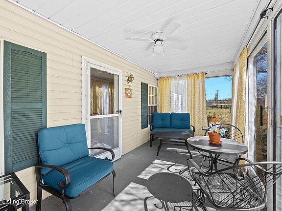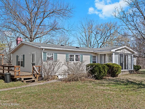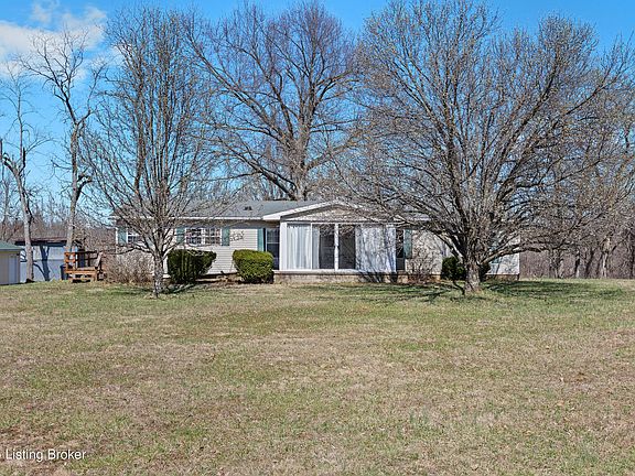Dreams can come true on this stunning 30+ acre property in Trimble County! This beautiful manufactured home on a permanent foundation offers a perfect blend of comfort and country living. The land features rolling fields, private wooded areas, and sections ideal for livestock. The home itself boasts over 1,600 sq. ft. of living space, including a spacious kitchen with ample cabinetry, a dining room, living room, cozy den, and three bedrooms with two full baths. Enjoy the peaceful surroundings from the charming wrap-around porch or soak in the views from the inviting sunroom. Outside, you'll find a two-car garage and an additional storage building, providing plenty of space for tools, equipment, or hobbies. Whether you're looking for a private retreat, a working farm, or a place to spread out and enjoy nature, this property offers incredible value. Don't miss your chance to own this special piece of Kentucky countryside!