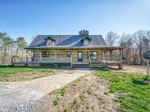 FABULOUS 3 BEDROOM, 3.5 BATH TRUE LOG HOME ON 29 UNRESTRICTED ACRES! Over 2500 Sq. Ft . (does not include full unfinished basement). These logs were hand hewn from timber off the property. Brand new roof, new gas HVAC, new water heater, new double ovens, massive fireplace, real wood floors, wood burning stove, and spacious wrap around porch are just a few reasons to fall in love with this home. Primary suite with huge walk-in closet and laundry room are located on the main floor for convenience. Perfect for serious homesteaders and hunters. Ideal mixture of pasture for farm animals in the front, and hardwood trees with a creek on the back of the property that backs up to Catoosa Wildlife Mgmt. Area. Fenced garden area. Located in a secluded community with great neighbors on cul-de-sac road. Outbuilding , wood burning stove and appliances including washer and dryer convey. Freezer is negotiable.
