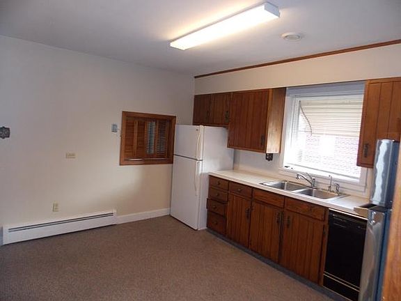 This cozy 2 bedroom brick house has large sunroom, washer dryer hook-ups, 1 car garage, spacious basement, and nice yard! Heated with oil, tenant is responsible for all utilities. (lawn care included)