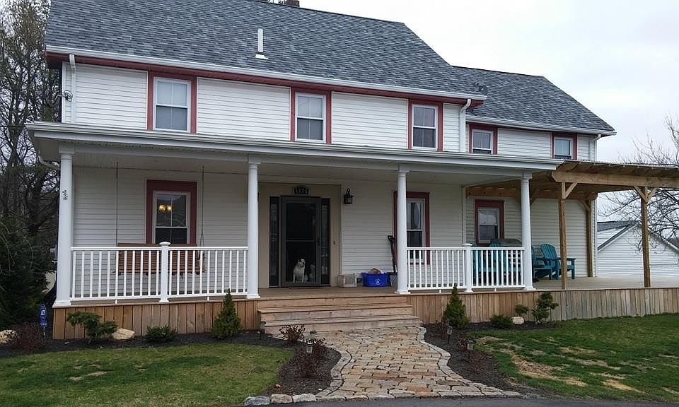 Since 2012 the home has been upgraded in many ways; kitchen remodeled with new cabinets, granite counters, beverage cooler; breakfast bar and stainless appliances; roof; electrical to 200 amp and 2nd floor panel added; recessed lighting; wall mounted tvs; wired for surround sound in living area; hardwood; stair railing; 12x30 farmer's porch w 14x20 pergola; cobblestone walkway front and side; shed; entrance doorway w side lights; 2nd floor bathroom renovation in progress;. So much to see in this beautifully cared-for home. So many possibilities for using the space. The basement has a high ceiling, full walk out and open space for storage.
