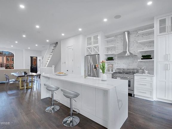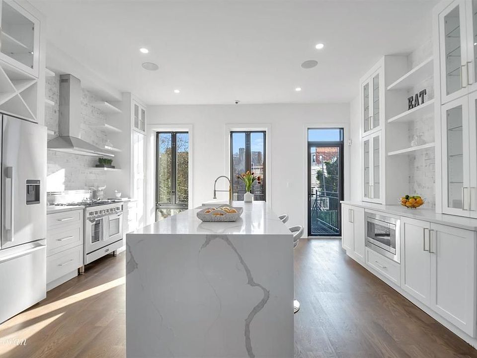 3D Tours Now Available Upon Request! Unveiling 1194 St. Johns Place; a newly renovated two-family smart-home with parking in the heart of bustling Crown Heights. Originally constructed in 1899, this 18' wide brick home has been completely re imagined to fit today's modern lifestyle while leaving no stone unturned.. This three-story townhouse offers a lavish 3 bedroom, 2.5 bathroom owner's triplex with a south-facing deck & zen garden. The garden floor offers a spacious 2 bedroom residence with outdoor access and laundry to boot for significant rental income. As you enter your parlor level, you're instantly welcomed by expansive open living, dining & kitchen quarters measuring 45' long, ideal for entertaining. The south-facing kitchen overlooks your garden and features creamy white custom cabinetry accompanied by a 9' Quartz waterfall island and blend of stainless steel appliances. An airy epicenter of your home with 10' ceilings and beautiful oversized arched windows to provide an abundance of natural light. The home is equipped with a full smart-home system controlling wireless speakers, lights & central air within the home. The second floor features your bedroom oasis with king-sized master suite overlooking your garden through south-facing windows. Enjoy a spacious walk-in closet and spa-like en-suite bathroom featuring double-sinks, a stall shower and back-lit mirror. Two additional bedrooms and bathroom complete the level, along with an outfitted laundry closet. The finished basement has already been combined to the owner's unit for seamless access as a playroom or media area. 1194 St. Johns Place is conveniently located in the center of Crown Heights and is just a short stroll away from the 3 (Kingston Ave) / 4 (Utica Ave) train for an easy commute into Manhattan. Enjoy the best of both Crown Heights and Bedford-Stuyvesant's local hotspots such as Saraghina's, Peaches, Tamra Teahouse, Casablanca lounge & Bed-Vyne to flaunt a few. This home provides a perfect opportunity for those looking to enter the renovated townhouse market while enjoying substantial rental income and private parking.