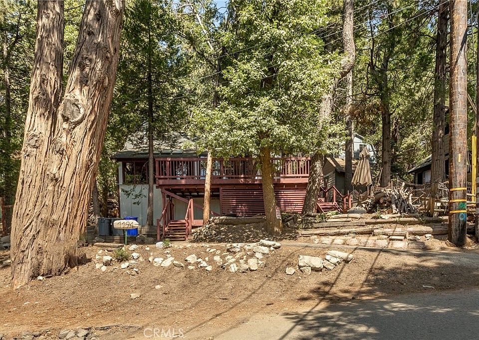 This 2-bedroom 2-bath mountain cabin has 1752 sq ft with so many possibilities. Large front deck sits at the front of the house with peek-a- boo views. Enter the mud room perfect to dispose of those snowy snow boots. From there walk into the sunroom with sky lights. When entering the main house, you will find a rustic kitchen with knotty pine ceilings and cabinets. The first bedroom is off the kitchen area with skylights. Dining area is off kitchen before entering into the living room with those knotty pine ceilings carried on from the kitchen. Adjacent to the living room is a family room, full bath, and laundry room that make up this main level. Upstairs has the master bedroom with full bath. The back yard has a bonus office or guest room with electricity. Enjoy the back yard sitting area with decking and storage shed. This house is a gem with so much potential.