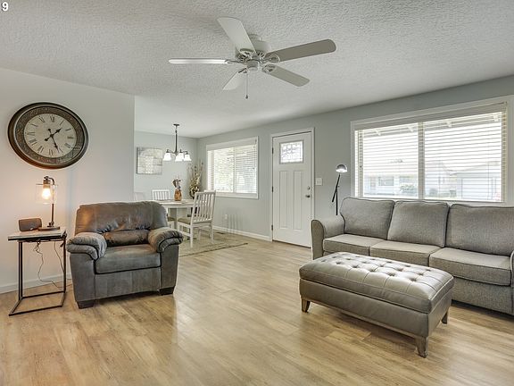 You'll feel right at home the moment you step into this move in ready, remodeled one level home in Woodburn Senior Estates. 2 bedrooms, 2 fully remodeled bathrooms. Light and bright kitchen with tile countertops and updated appliances. Landscaped fenced yard, new exterior paint, newer roof and vinyl windows. Sprinkler system, fenced yard and covered patio. 1 year home warranty included!
