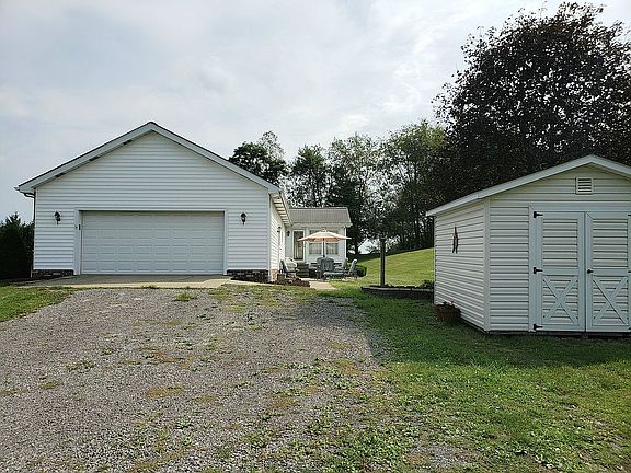 Family built in 1996 with lots of pride-Over 3 acres of land. Solid oak doors throughout the house. Additional room is the sunroom located thru the french doors off the dining room. Open kitchen dining area. Plenty of counter area and cabinets. Front bay window that offers a full view of the fall foliage Main level laundry area. Two full bathrooms. The main bath has a jacuzzi tub and plenty of storage. Walk in closet off the master bedroom while the second bedroom has a double closet. Pull down ladder in garage for even more storage. Basement is 13 course block if you would want to finish. There is a shed out building. Almost forgot to mention the three car detached up in the backyard. This is a must see!