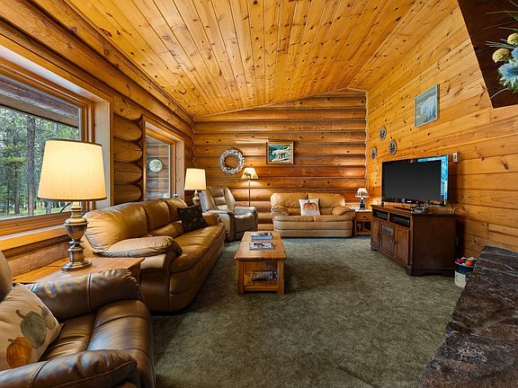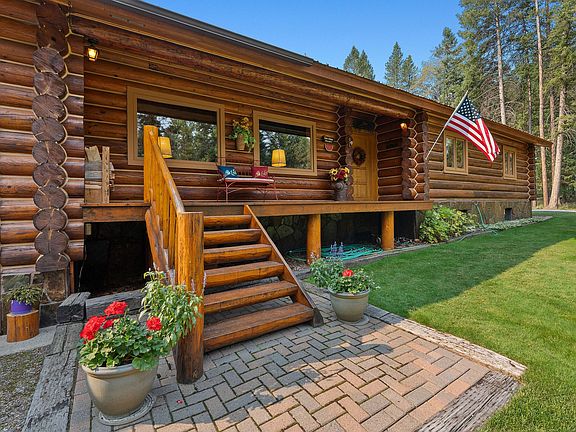 Tucked away on 20 acres of meticulously thinned forest, this stunning log home offers a serene Montana retreat. With 3 bedrooms and 2 bathrooms, you'll fall in love with its rustic charm and thoughtful details. The living room invites you in with a stone-faced fireplace, soaring vaulted pine tongue & groove ceilings, and the warmth of natural wood throughout. The kitchen features a brick wall and breakfast bar, granite countertops, stainless steel appliances, and a Thermador cooktop with hood. Don’t miss the historic 8' door from an early 1900’s Spokane school! You'll find a wood stove between the kitchen and dining area, while a bay window offers a picturesque view of the lush backyard. Step outside to a large back deck, perfect for relaxing, or enjoy the covered front porch. Extras include a 5-stall carport, attached 2-car garage, fenced garden area, and unfinished basement ready for your personal touch. Call Andrew Burgi (406) 407-7509 or your Real Estate Professional.