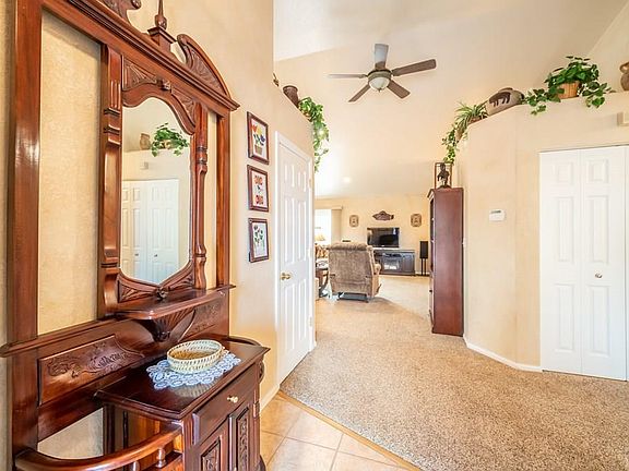 Beautiful Ranch style home with gorgeous views of the Mountains from the front porch to the back deck. You will enjoy the xeriscaped front and back yard with lots of color and no mowing! Big master bedroom includes a walk-in closet and 2 additional closet spaces. His and her sinks and a walk in shower. Kitchen has birch cabinets with honey glaze, tile floors and a huge pantry. Open concept living area with an adjoining dining area. Furnace and central air units placed in 2008 and Rinnai hot water on demand put in 2011. In low-e windows and upgraded window blinds in 2010. Additional areas of concrete are a Plus.