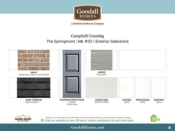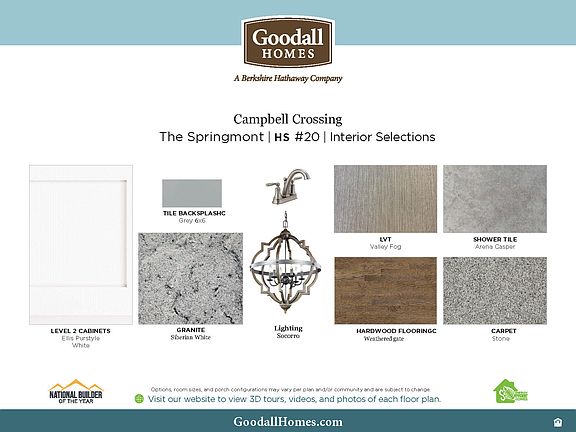 The Springmont with the Homestead Elevation is a beautiful 2-story home with a MASTER ON THE MAIN. Beautiful open concept with greatroom, dining and kitchen all connected. Retreat upstairs to two additional bedrooms. Gorgeous brick on 4-sides with hardie board accents. Chosen selections include 42'' upper cabinetry in the kitchen with upgraded white cabinetry, kitchen island, Level 2 granite countertops, tiled backsplash, and stainless steel GAS appliances. Enjoy hardwood floors through the living areas and luxury vinyl tile in the bathrooms, and laundry room. Relax in your master bathroom with double vanity, a separate soaking tub and stand up tiled shower. Enjoy some privacy in the backyard on your covered rear porch.
