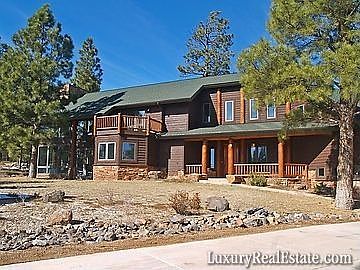 Spectacular lodge style home with expansive log (interior/exterior) construction, accents and details...located on a privated old growth Ponderosa Pine covered 2.25 acre parcel with unsurpassed mountain and forest views with easement access to forest. This multi-level home boasts of a brilliantly designed floor plan, complete with top-of-the-line elevator, hand stripped logs, custom stonework, hardwood and slate floors, hardwood doors, slab granite, custom sound and electronics and much much more. This home will impress the most discriminating buyer... NOW SHORT SALE.