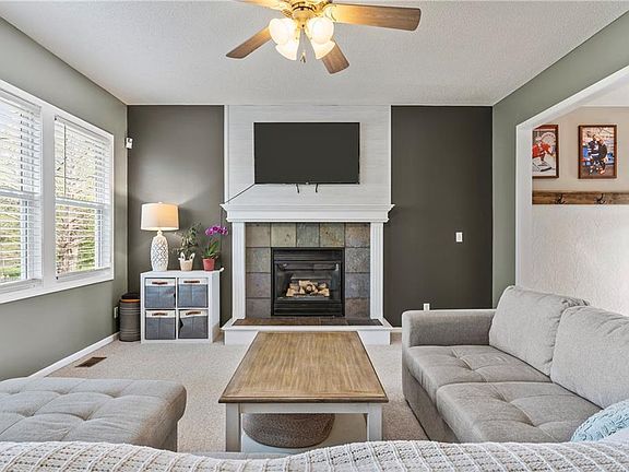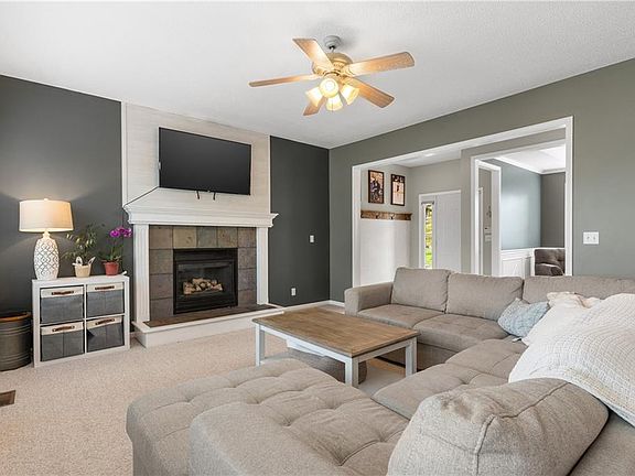 • Features: Carpet, Ceiling Fan(s), Fireplace