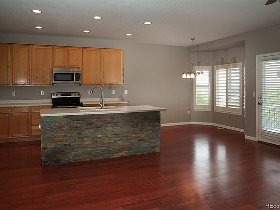 Nestled in a coveted Parker neighborhood with amazing trails, swimming pool & tennis courts, this ranch home delivers the perfect blend of comfort, convenience & breathtaking views. Upon entering, you're greeted by a living room filled with light flowing seamlessly into the dining area creating an open, welcoming atmosphere. The dining room has plenty of space for those special family gatherings. Adjacent, the heart of the home awaits - the kitchen! Equipped with 42” cabinets, stainless steel appliances, a double oven, & large pantry, this kitchen sets the stage for memorable entertaining. A cozy breakfast nook with a bay window & deck access pairs perfectly with amazing mountain views, from Pikes Peak to Longs Peak on clear days. The kitchen spills into the family room, fostering an open atmosphere for family interactions or social gatherings. Situated on the main floor is the large primary bedroom with a bay window, walk-in closet & an ensuite bathroom containing an oversized soaking tub, dual sinks, & a private water closet. With easy access to the laundry facilities, this space combines comfort & practicality. Completing the main floor are two more bedrooms as well as a full bath. Descending to the basement, you'll find another full bath & family room. This space is flexible enough to cater to your needs, whether as an entertainment zone or a game room. Two more bedrooms with large closets offer space for guests, or perhaps a craft room! The basement's partial kitchen has a sink, garbage disposal, lots of cabinet & counter space, great for an additional kitchen prep space. Versatile in its use, the basement could be turned into an in-law suite or modified to function as a self-contained apartment. Outside, the xeriscaped backyard is easy to care for & showcases natural Colorado landscaping. A large patio area & trees create a serene atmosphere. A three-car garage with built-in shelving & a separate entrance to the backyard, adds to the home's convenience.