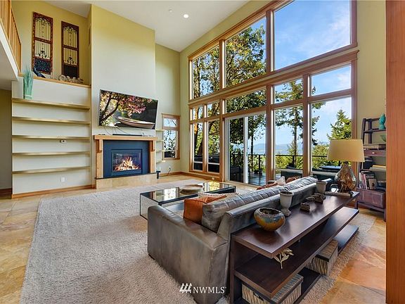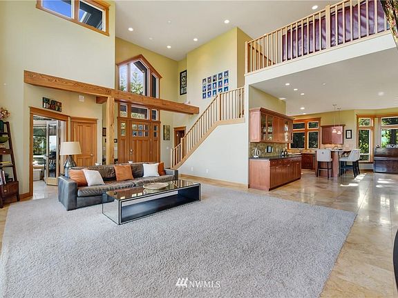 Gorgeous custom built home perched on a hill with sweeping water and mountain views in gated Fidalgo Bay Estates! Dramatic two story ceiling and windows in great room. 2nd floor loft bonus room is open to great room and also enjoys the stunning views! Kitchen and dining are perfect for entertaining with a large wet bar, open dining area and extra seating at the breakfast bar in the kitchen. Master bedroom is on the main floor with deck access and a grand spa type master bathroom with deep soaking center tub, dual vanities, steam sauna, a separate shower and large walk in closet. 3 car garage with carriage style doors add such character to this lovely home. Such an amazing home that won't last long, act today!