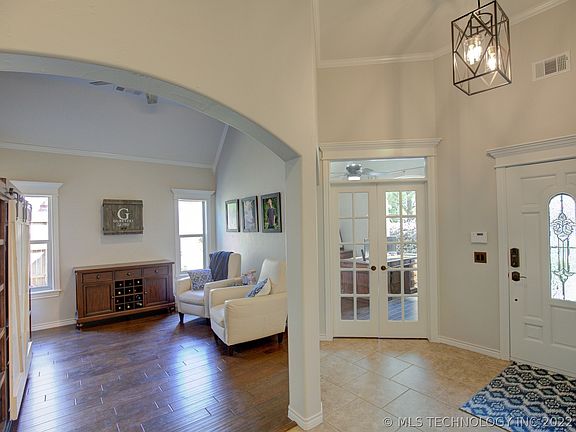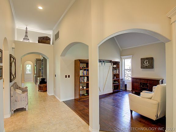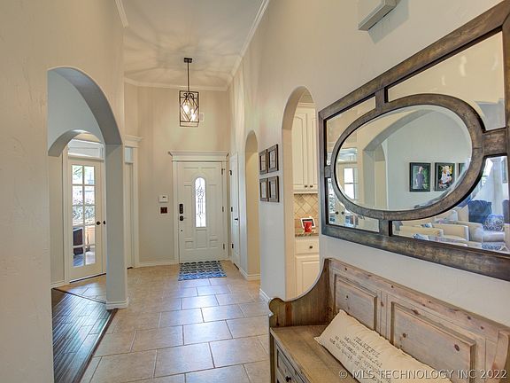 Great Floor Plan in Twin Creeks III, Bixby. This large beautiful home features Master + 2 beds down w/Pullman bath. Large Living opens to Kitchen & Breakfast Nook. Dining & Study down. Upstairs is 4th bedroom w/private bath & game room + 2 bonus rooms. Flagstone Patio w/Pergola. Recent updates include - wood floors in beds down & stairs, new carpet up, new paint inside & out, painted kitchen cabinets, majority of windows replaced w/energy efficient windows. Most light LED.